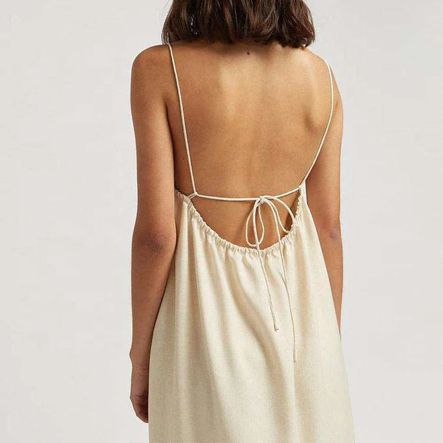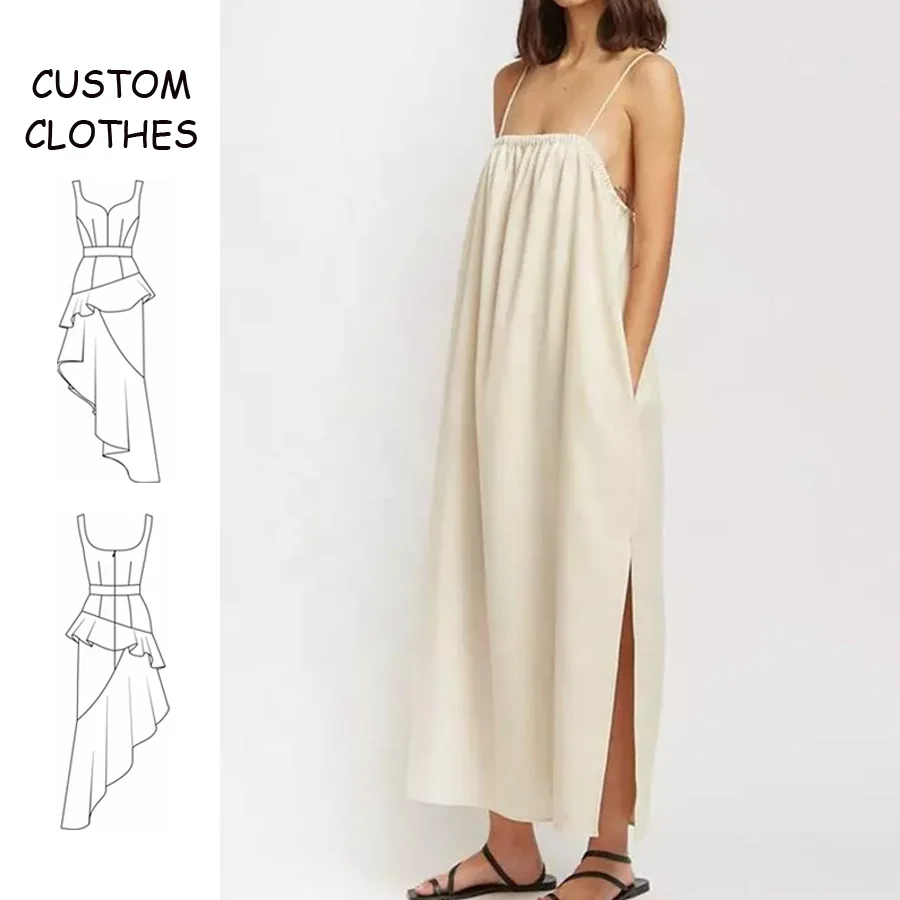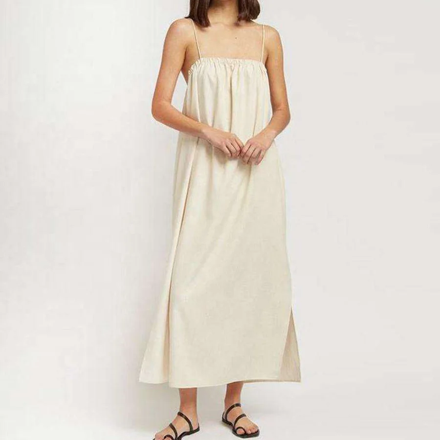 Custom Petite Women Plus Size Solid Ruched Cotton Linen Vacation Maxi Casual Vintage Backless Elegant Summer White Dress